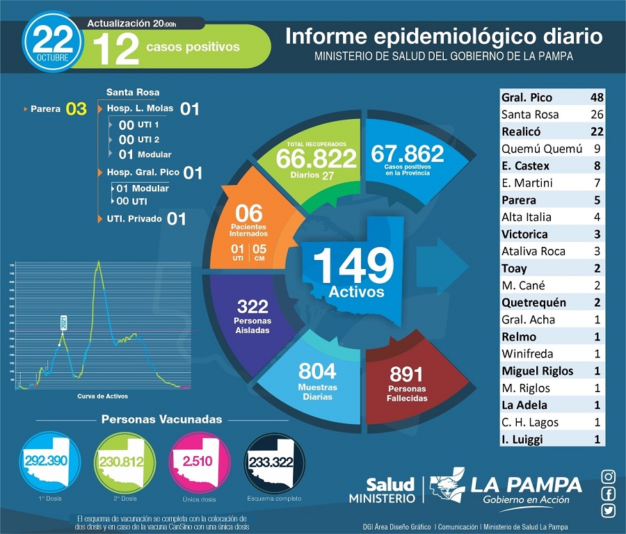 El 74,57% de los y las pampeanas que se inscribieron para recibir su vacuna contra el Covid-19 ya tiene el esquema completo con las dos dosis, según informó el Gobierno provincial. A su vez, de 26.729 menores de 3 a 11 anotados ya se vacunó al 80% (21.387).