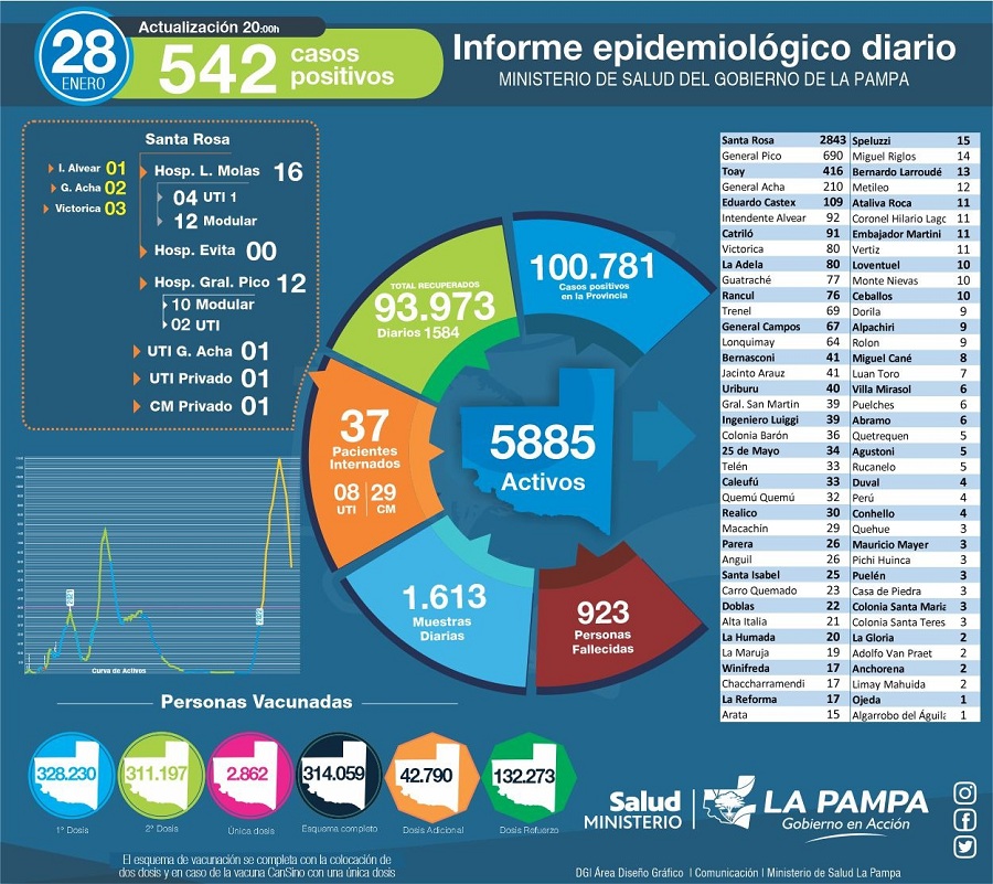 Desde el Ministerio de Salud de la provincia de La Pampa se insistió sobre las medidas preventivas respecto a la enfermedad de la cual, se sabe, se pudo identificar la presencia del vector, el mosquito Aedes Aegypti, puntualmente en la zona noreste del territorio determinando como límite sur la localidad de General Acha, aunque no se confirmó circulación viral.