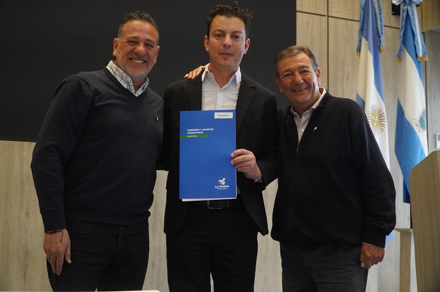 En el Salón de Acuerdos el ministro de Gobierno y Asuntos Municipales, Pascual Fernández, acompañado por el subsecretario de Asuntos Municipales, Rogelio Schanton; y el director general de Planificación Territorial, Gabriel Reiter, firmó los acuerdos con General Acha, Miguel Riglos, Bernasconi y Caleufú.
